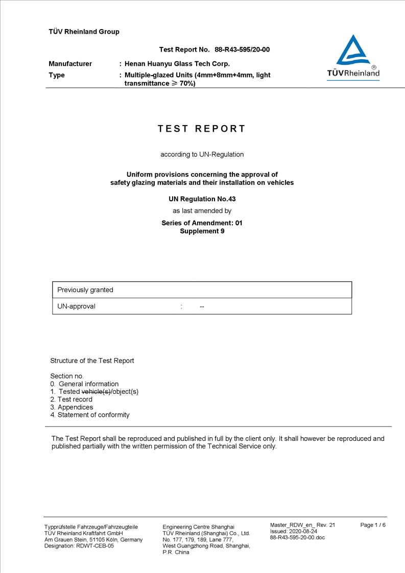 河南環(huán)宇玻璃科技股份有限公司年產(chǎn) 5 萬平方米驗收報告公示